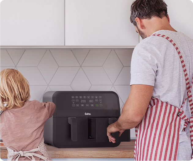 Soho air fryers are dishwasher safe, making washing up a non-event (unless you even hate opening up the dishwasher drawer, which if that is the case, we can’t help you). If your air fryer model permits, every so often it is good to keep the basket and drawer separated and wash each one thoroughly with soap and water, although not all Soho air fryers detach, so this isn’t a hard and fast rule. Crumbs and grease pile up and can affect the quality of your food so washing both thoroughly keeps your food quality at A+ levels. (It goes without saying but please don’t put the air fryer in the dishwasher).